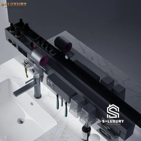 Giá Để Đồ Nhà Tắm Thông Minh S+Luxury, Tích Hợp Máy Tiệt trùnġ Bàn Chải Tiện Lợi, Giá đỡ thông minh Đựng Bàn Chải
