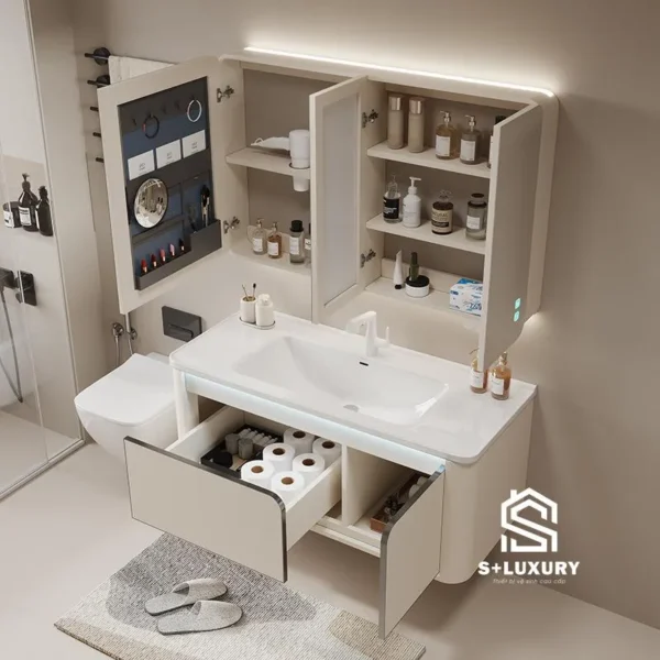 Với thiết kế 2 tầng, chậu rửa lavabo mặt đá 2 tầng này cung cấp không gian rộng hơn cho việc sắp xếp và sử dụng các vật dụng như xà phòng, bàn chải đánh răng, và các sản phẩm chăm sóc cá nhân khác. Bạn có thể sử dụng tầng trên để đặt những vật dụng cần tiếp cận nhanh chóng trong khi tầng dưới dùng để rửa mặt, rửa tay hoặc rửa chén bát.