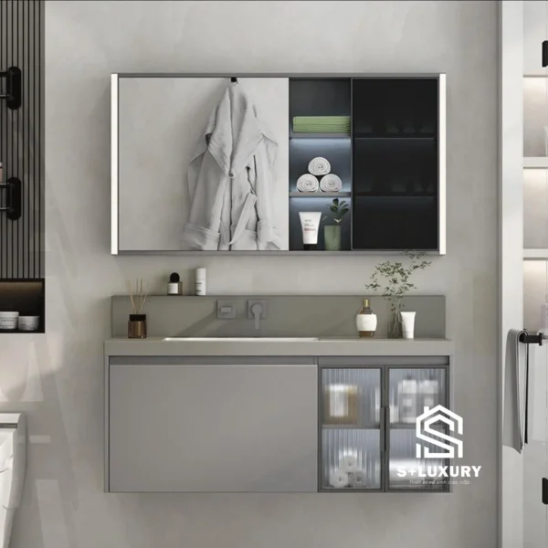 Tủ chậu bo tròn kèm tủ gương thông minh ( mẫu mới 2023 ) DH 38