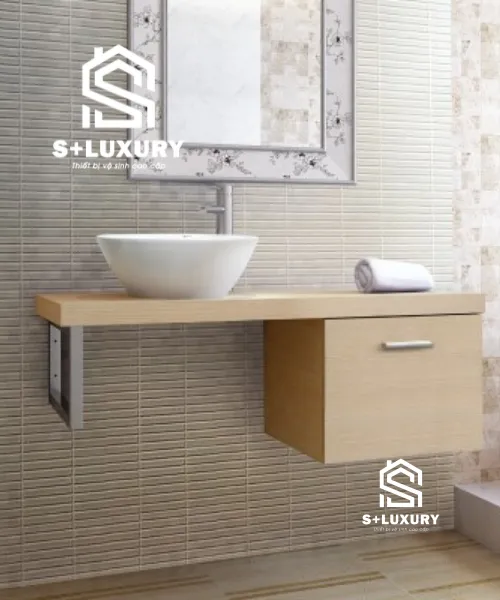 Chất liệu cao cấp: Sử dụng vật liệu gỗ công nghiệp phủ melamine chống ẩm, kết hợp với chậu lavabo sứ cao cấp, giúp sản phẩm bền bỉ và dễ dàng vệ sinh.
